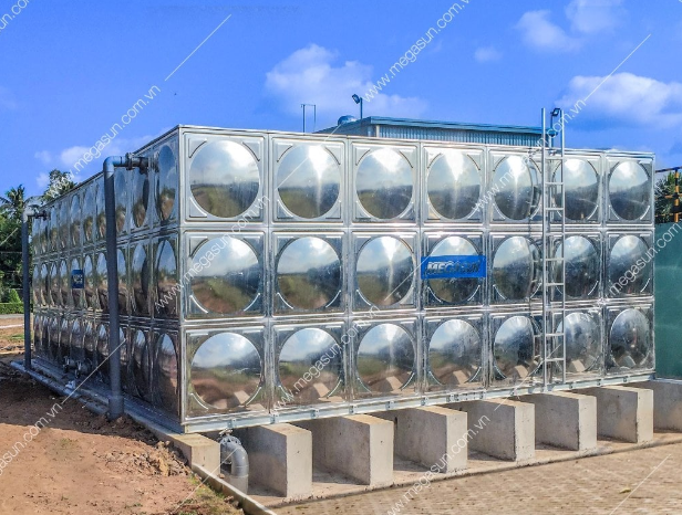 Bồn chứa nước lắp ghép công nghiệp Megasun dùng vật liệu inox cao cấp được sử dụng rộng rãi trong các công trình xây dựng dân dụng, công nghiệp, bể chứa chuyên dụng. Đảm bảo tốt nhất chất lượng nguồn nước chưa, chống hình thành tảo, rong rêu trong bể.